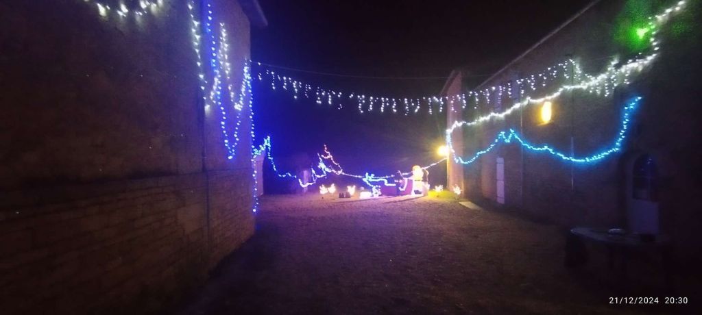 Durant les week-ends du 21-22 et du 28-29 décembre, dans la cour du presbytère à droite de l’église de Lezay. Vous pourrez découvrir entre 18 heures et 21 heures le décor illuminé de Noël avec le traîneau du Père Noël, tout en profitant d’un chocolat chaud offert et la possibilité de prendre des photos, pour un Noël de partage.